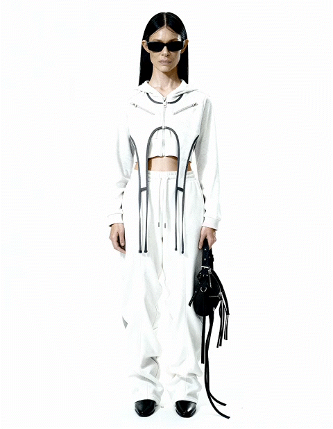 ARTS DE BASE와 NEW WAVE BOYS의 첫 콜라보 제품으로 아드베스의 시그니처 자켓 라인의 후드 크롭 자켓 버전으로 새롭게 선보이는 제품 입니다. 기존의 스트랩 디테일 및 크롭한 기장을 차용하였으며 앞 부분의 여밈은 단추 대신 지퍼 사용 및 이중으로 여밀 수 있는 디테일 등으로 표현 하였습니다. 콜라보 제품인 만큼 상의는 아드베스의 디테일, 하의는 뉴웨이브보이즈의 디테일을 사용하여 셋업으로 착용시 유니크한 스타일링이 가능 합니다. 컬러는 화이트, 그레이, 블랙 세 가지 이며 사이즈는 Free로 한 가지 입니다.