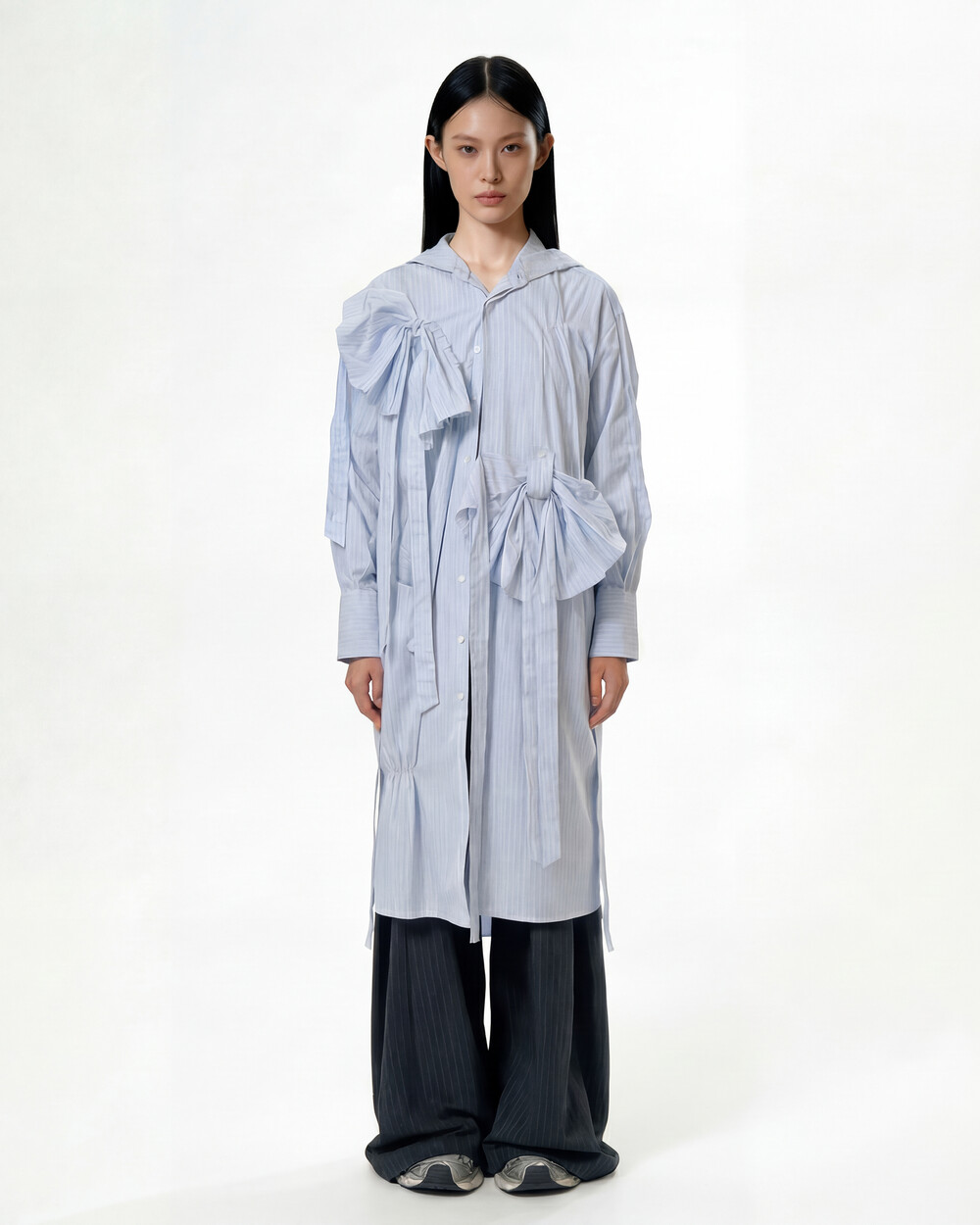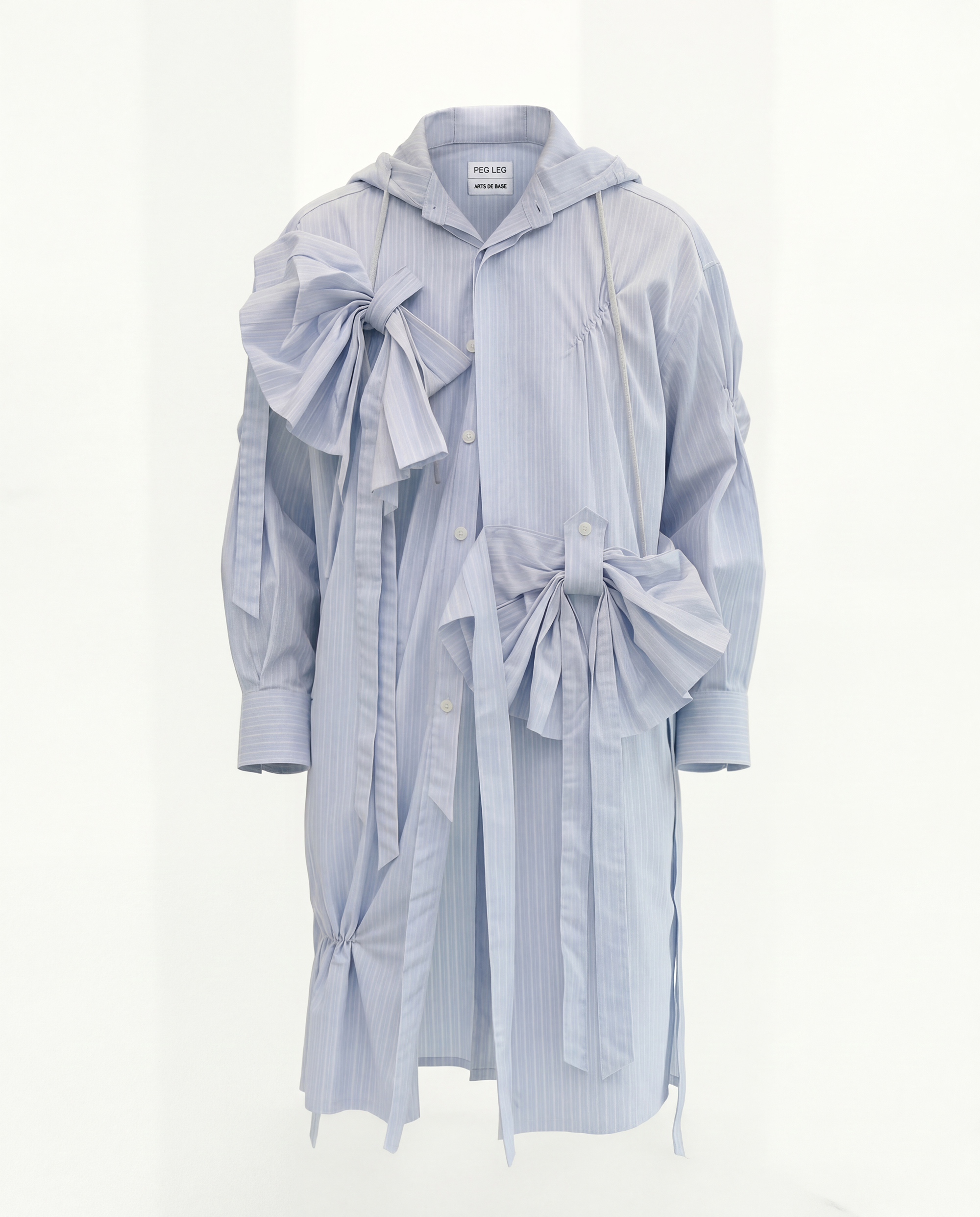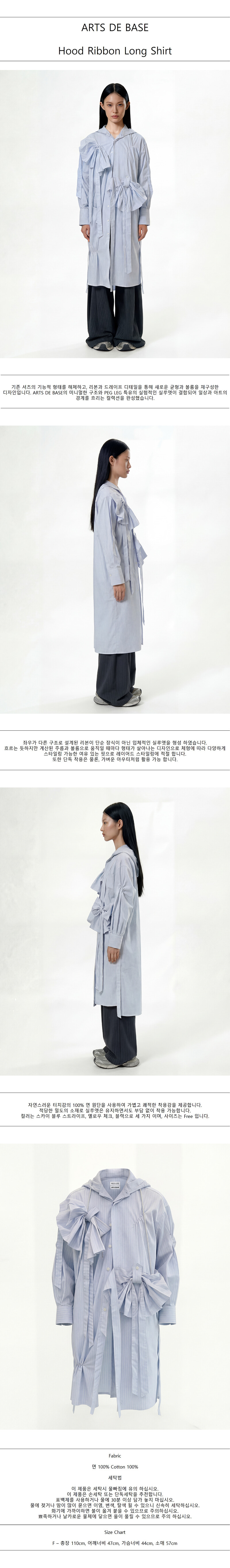 Hood Ribbon Long Shirt (Sky Blue Stripe)