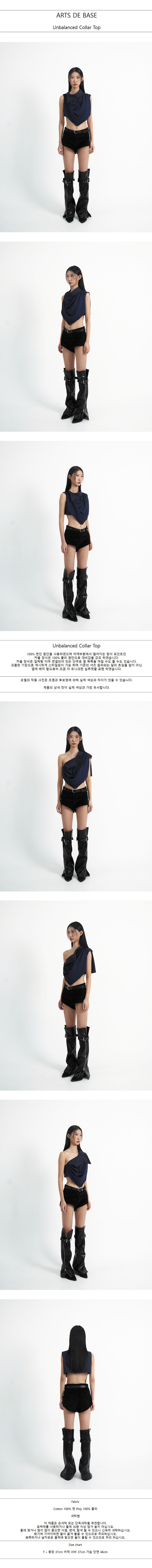 크롭한 기장으로 섹시하게 스타일링이 가능 하며 기존의 셔츠 칼라와는 달리 트임을 앞이 아닌 옆에 배치 함으로써 조금 더 유니크한 실루엣을 표현 하였습니다.