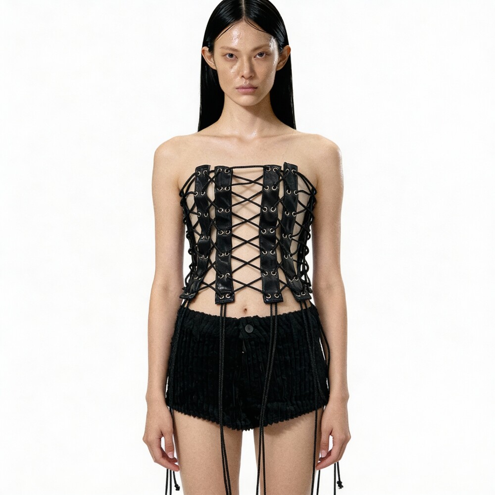 웨빙 끈으로 만들어진 코르셋 입니다 자유롭게 사이즈 조절이 가능한 제품 입니다
