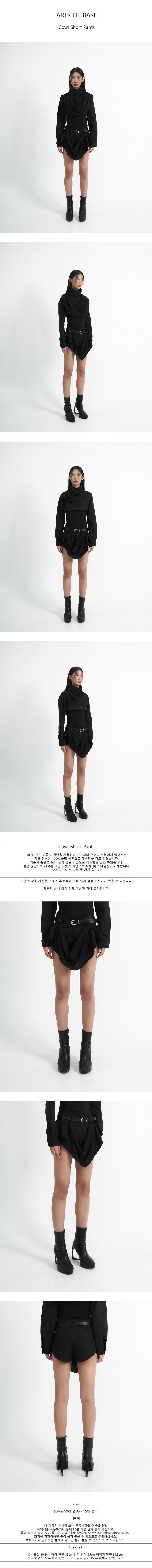 100% 면인 이중지 원단을 사용하여 견고하며 주머니 부분에서 떨어지는 카울 장식은 100% 폴리 원단으로 대비감을 강조 하였습니다. 기존의 숏팬츠 보다 살짝 짧은 기장으로 섹시함을 강조 하였습니다. 같은 원단으로 제작된 크롭 자켓과 셋업으로 착용 및 스타일링이 가능합니다. 사이즈는 S, M 으로 두 가지 입니다.